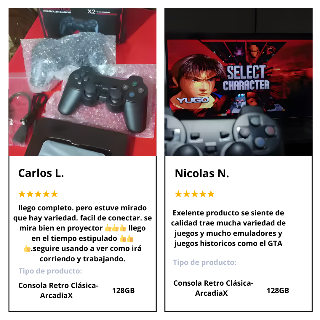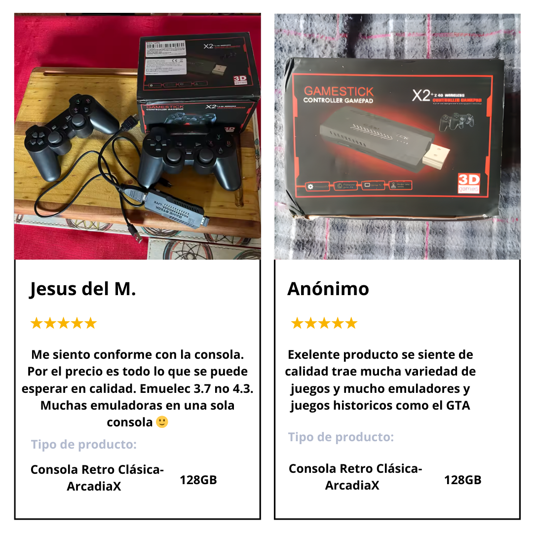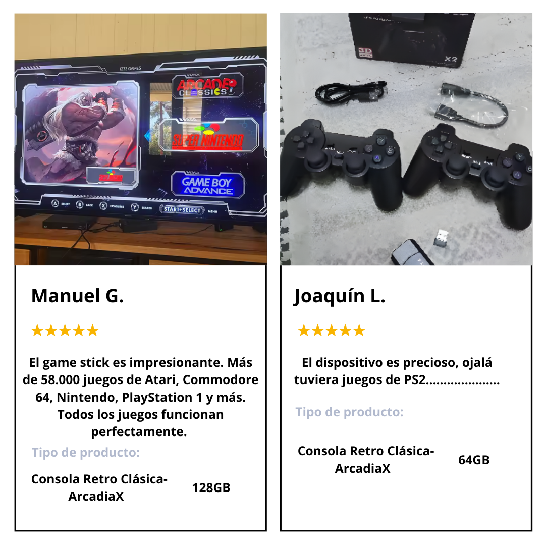 Los gamepads inalámbricos incluidos permiten jugar cómodamente desde el sofá, ya sea solo o en modo multijugador. Tu infancia vuelve a la vida en segundos.