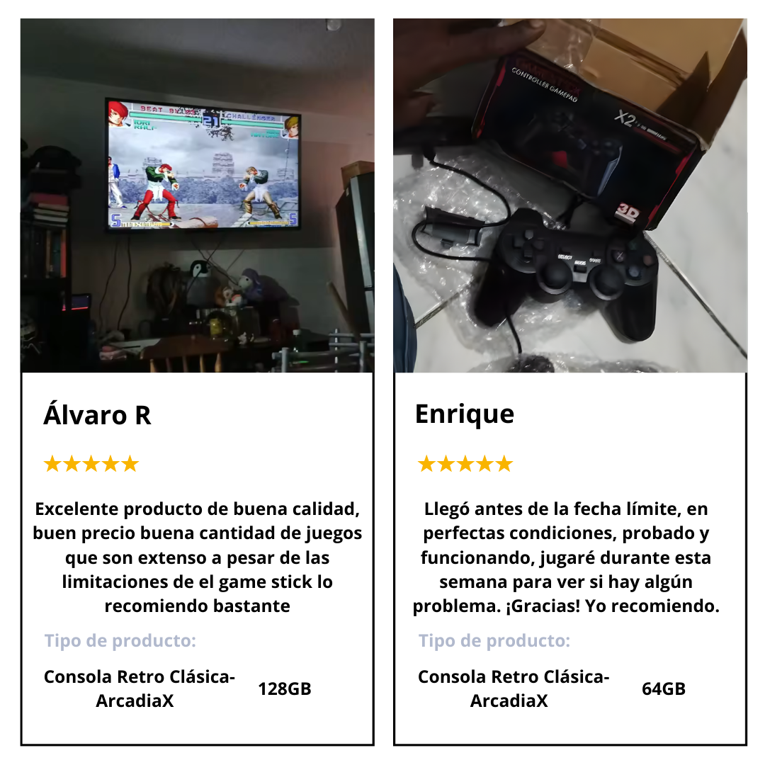 Con este tamaño tan reducido, puedes llevar tu consola a cualquier lugar: la casa de un amigo, un viaje, una reunión familiar o una noche retro improvisada. Solo conéctalo a cualquier TV con HDMI y empieza a jugar.